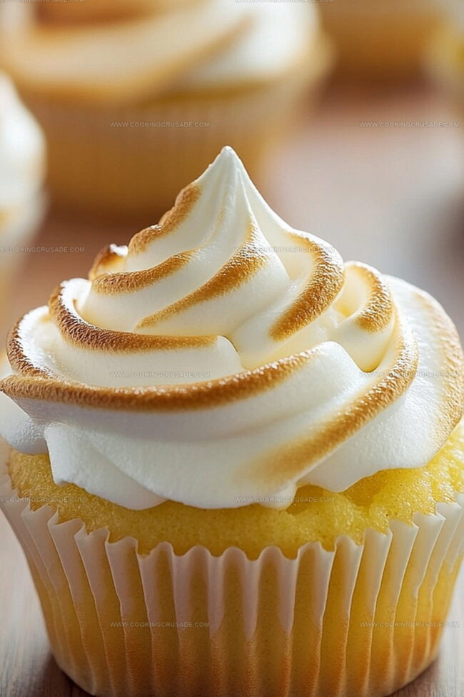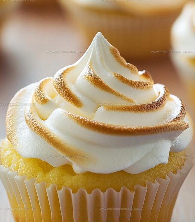 The golden-brown meringue top adds a stunning visual appeal that makes these cupcakes impossible to resist.