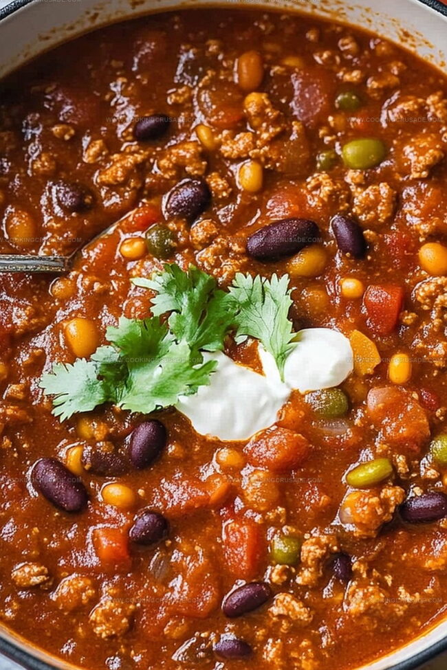 - Transfer the robust chili into serving bowls, garnishing with shredded cheese, dollop of sour cream, fresh cilantro leaves, or crispy tortilla chips.