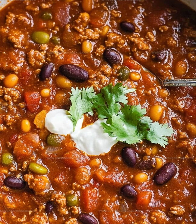 Hearty Turkey Chili delivers a flavor-packed punch of comfort and warmth in one satisfying bowl. Spicy, robust seasonings blend perfectly with lean ground turkey, creating a protein-rich meal that will become a family favorite.