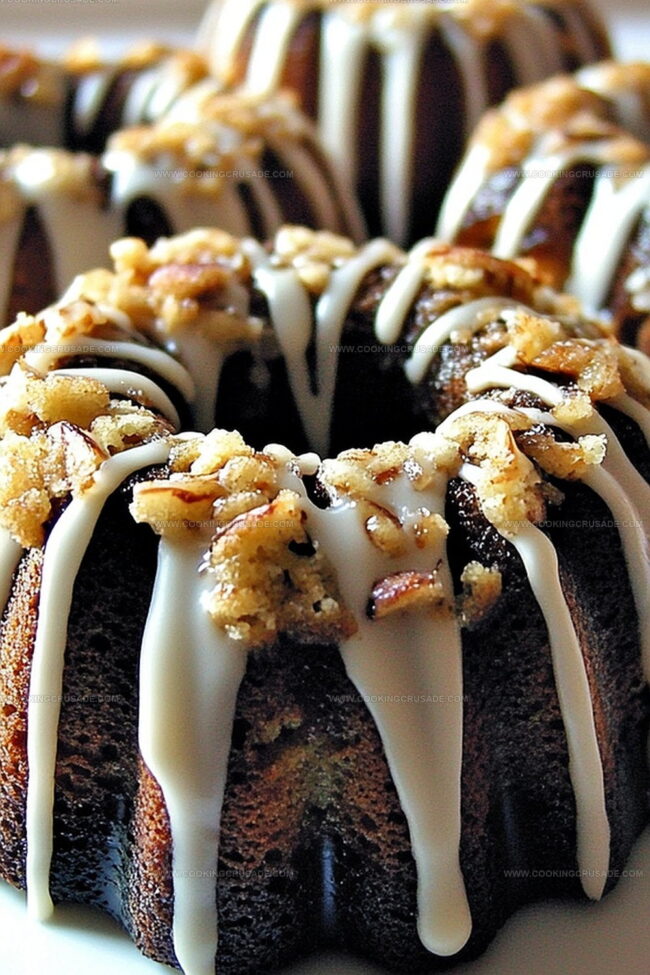 Drizzle the glaze over the cooled cakes, letting it cascade down the curves. Give the glaze about 10 minutes to set before serving.