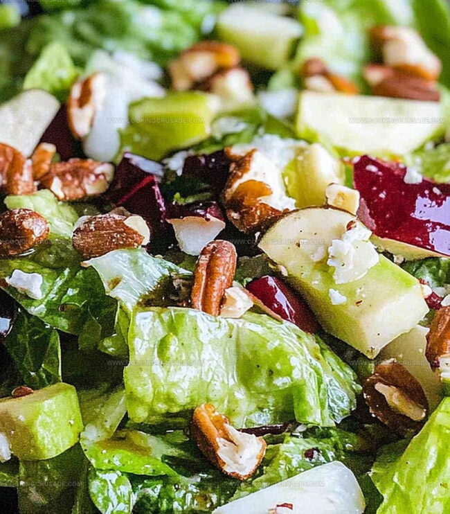 Drizzle the freshly made vinaigrette over the winter salad, gently tossing to ensure every ingredient gets a delightful coating of flavor. Serve immediately for maximum crunch and taste.