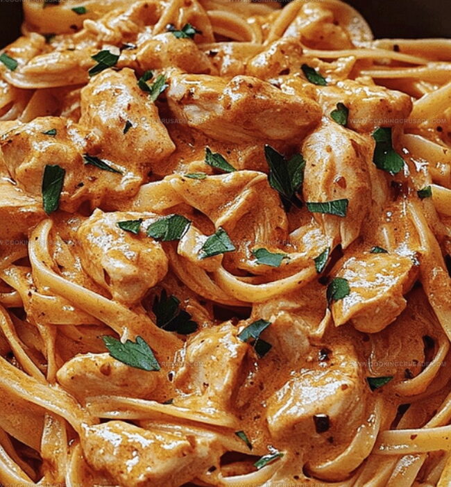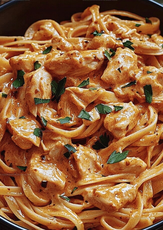 Cowboy butter chicken linguine combines bold Western flavors with creamy Italian pasta traditions. Rich, spicy sauce coats tender chicken and linguine, creating a hearty meal perfect for ranch-style dining experiences.